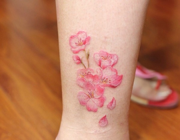 清新小桃花脚踝纹身_脚部纹身图案大全_纹身图吧