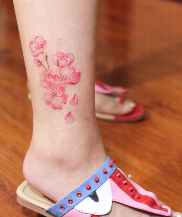 清新小桃花脚踝纹身_脚部纹身图案大全_纹身图吧