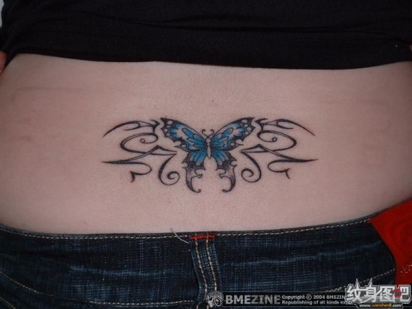 分享一款腰部时尚性感的蝶恋花纹身图案_腰部纹身图案大全_纹身图吧