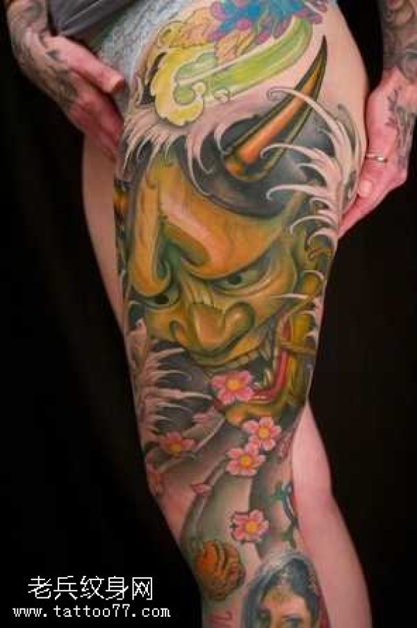 传统花腿纹身--18张传统风格的大花腿纹身图案作品