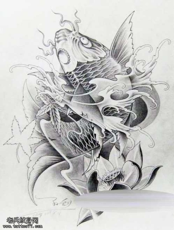 双鱼座纹身手稿_45张十二星座之双鱼手稿纹身图案