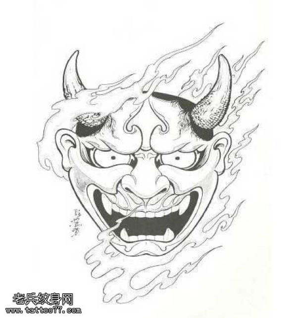 能面万媚纹身手稿_52张日式能剧面具纹身手稿图案素材欣赏