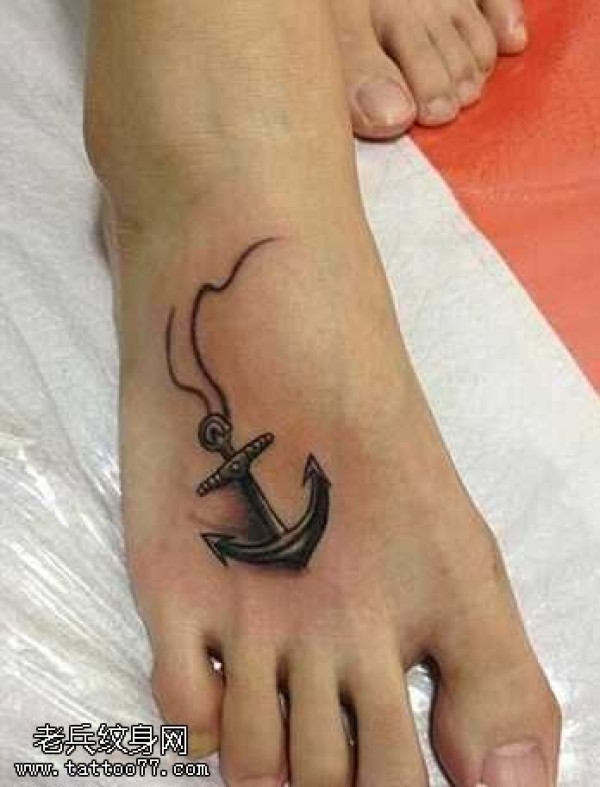 脚背背上漂亮的船锚纹身图案
