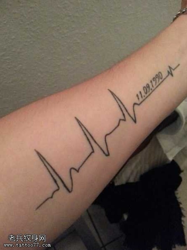 手臂心电数字纹身图案