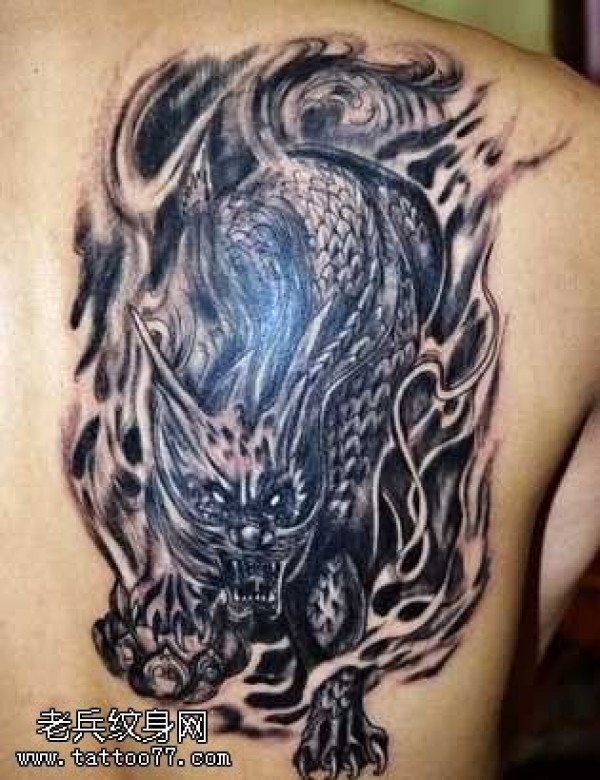 肩部黑麒麟纹身图案