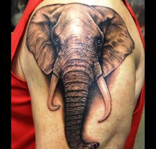 大臂膀上的越真实的象纹身图案