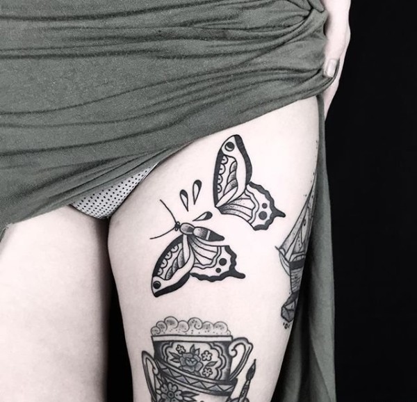 传统花腿纹身--18张传统风格的大花腿纹身图案作品