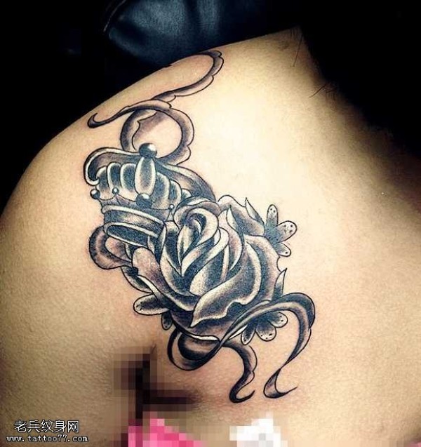 女生肩花纹身_15张女性双肩对称的肩花纹身图案作品图片