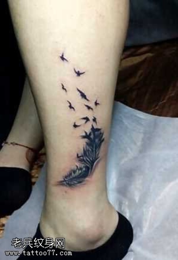 腿部羽毛纹身图案
