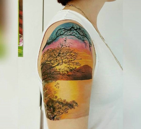 手臂一款彩色蘑菇纹身图案_臂部纹身图案大全_纹身图吧