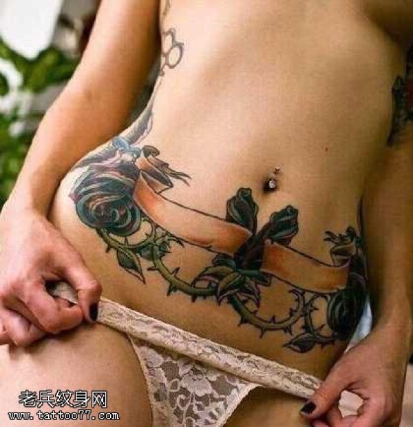 女性腰部莲花花纹刺青_腰部纹身图案大全_纹身图吧