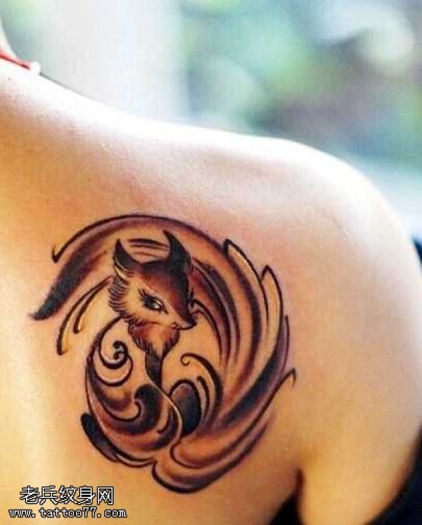 肩部小狐狸纹身图案