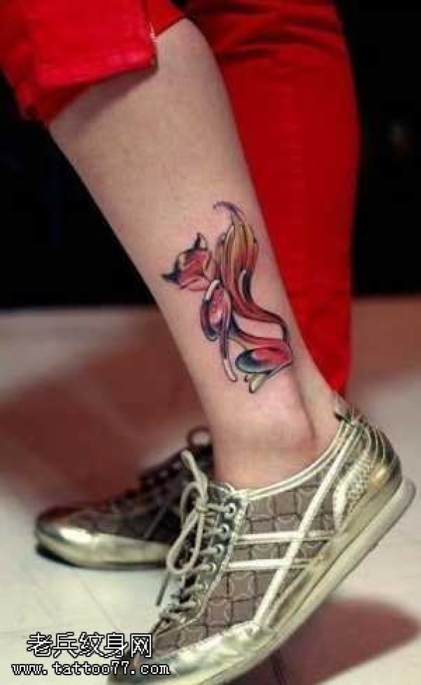 传统鲤鱼花小腿纹身_腿部纹身图案大全_纹身图吧