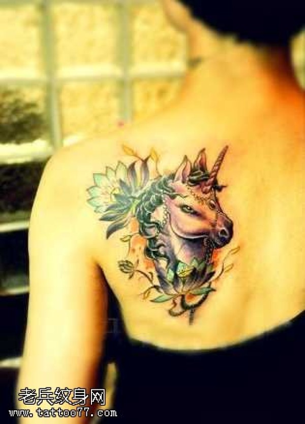 肩部漂亮的独角兽纹身图案