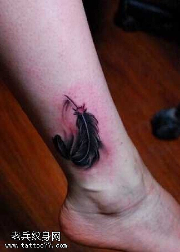 腿部羽毛纹身图案
