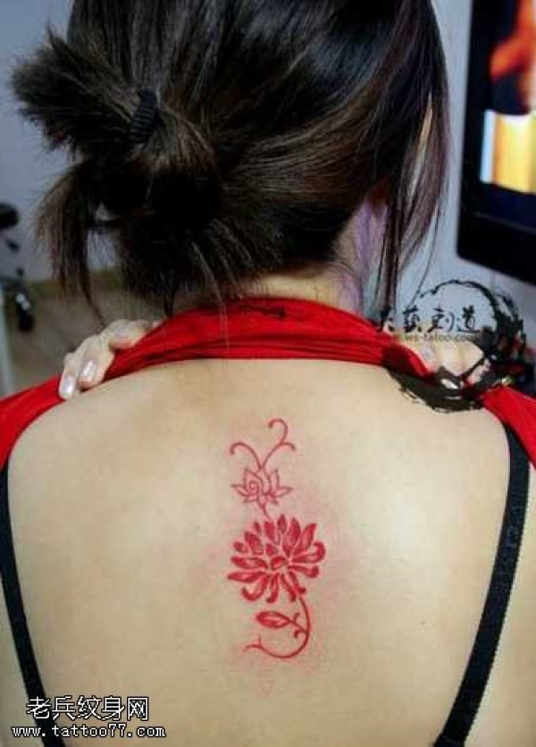 背部红莲花图腾纹身图案