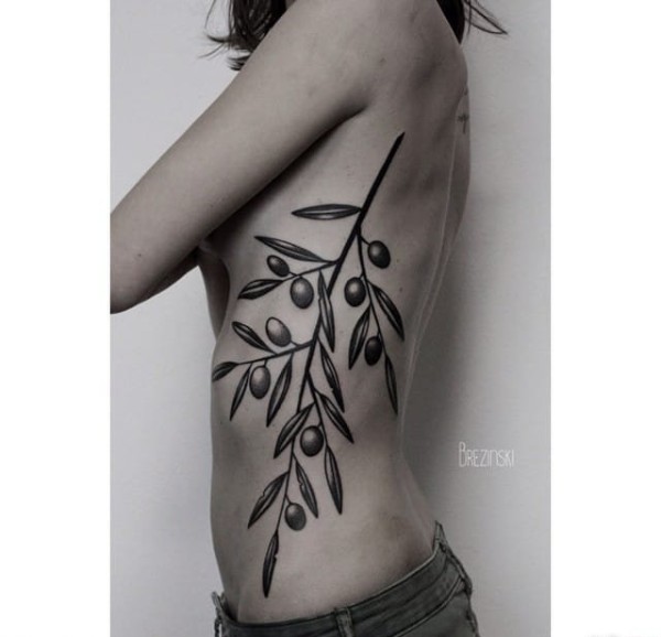 黑色破烂了的树叶纹身图片