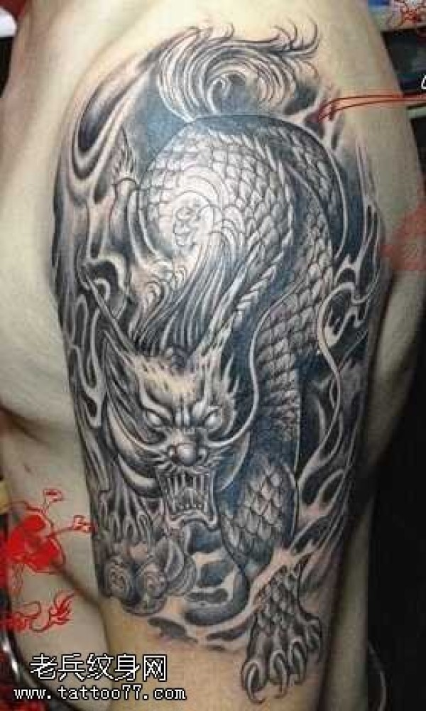 龙纹身手稿_一组老传统黑灰龙手稿纹身图案