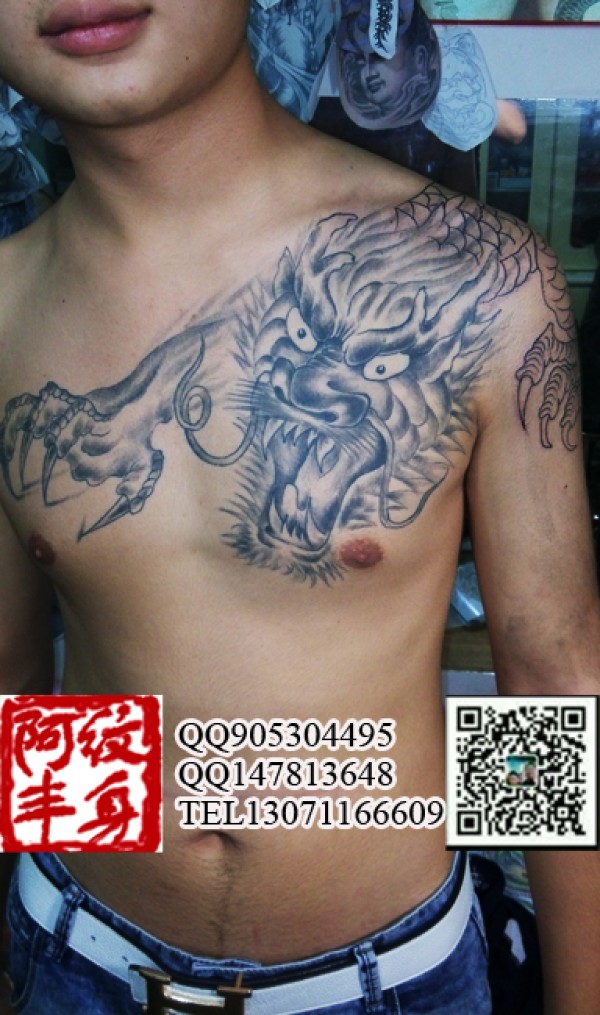 胸前龙头纹身 尾巴在后边