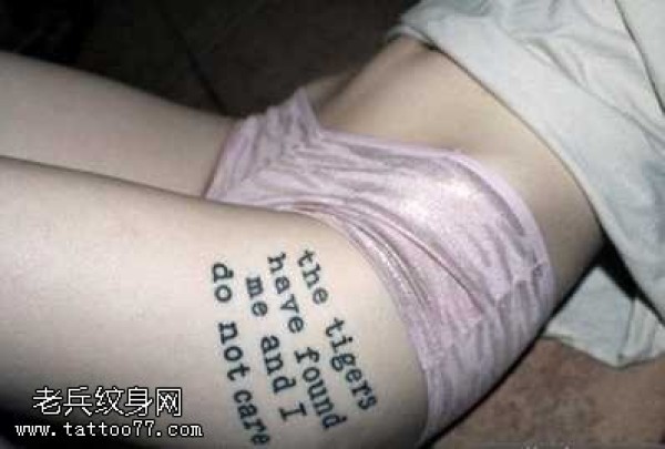腿部优雅英文字符纹身图案