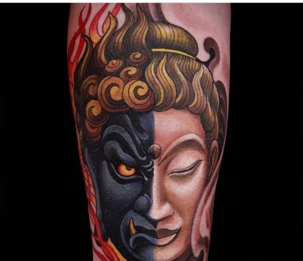 帅气的彩色花腿纹身水墨画纹身图案