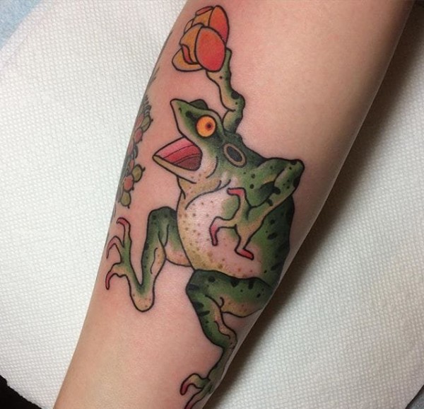 大腿上漂亮的玫瑰花与蛇纹身图案