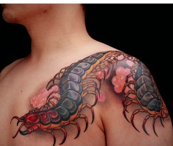 女生肩花纹身_15张女性双肩对称的肩花纹身图案作品图片