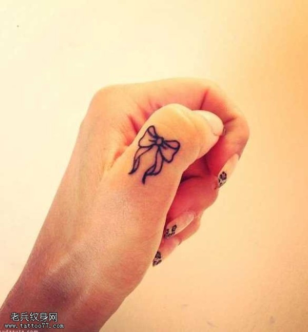 漂亮唯美蝴蝶结手指纹身图案