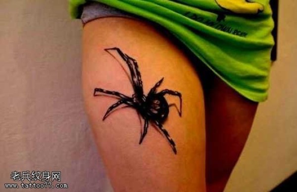 大腿部个性的蜘蛛纹身图案