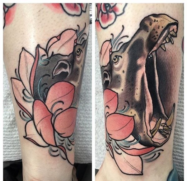 德国恐龙纹身眼镜蛇和卡通鳄鱼纹身水彩动物图案纹身