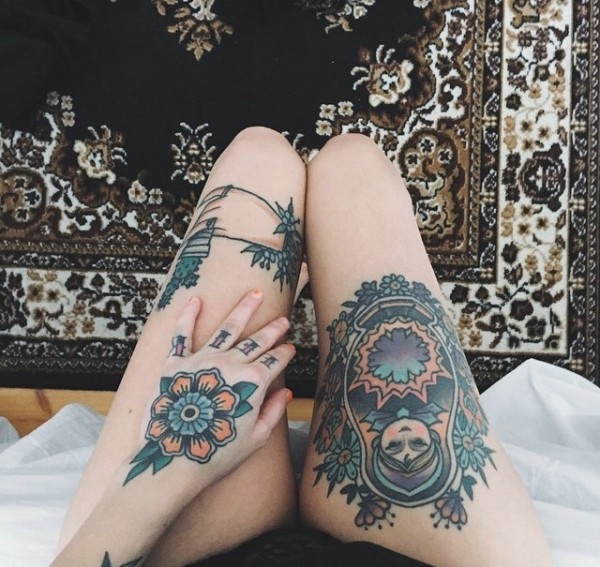 传统花腿纹身--18张传统风格的大花腿纹身图案作品