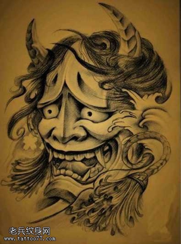 能面万媚纹身手稿_52张日式能剧面具纹身手稿图案素材欣赏