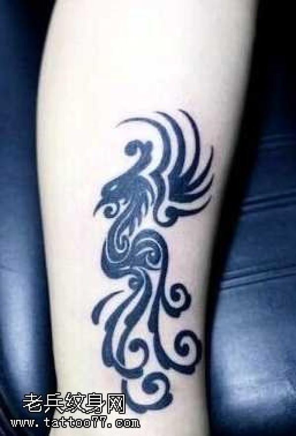 腿部凤凰图腾纹身图案
