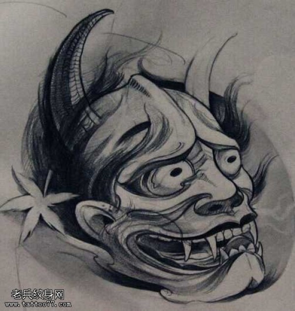 能面万媚纹身手稿_52张日式能剧面具纹身手稿图案素材欣赏