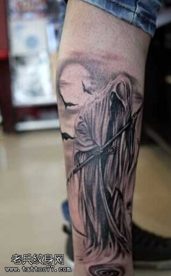 男生小腿死神纹身_腿部纹身图案大全_纹身图吧