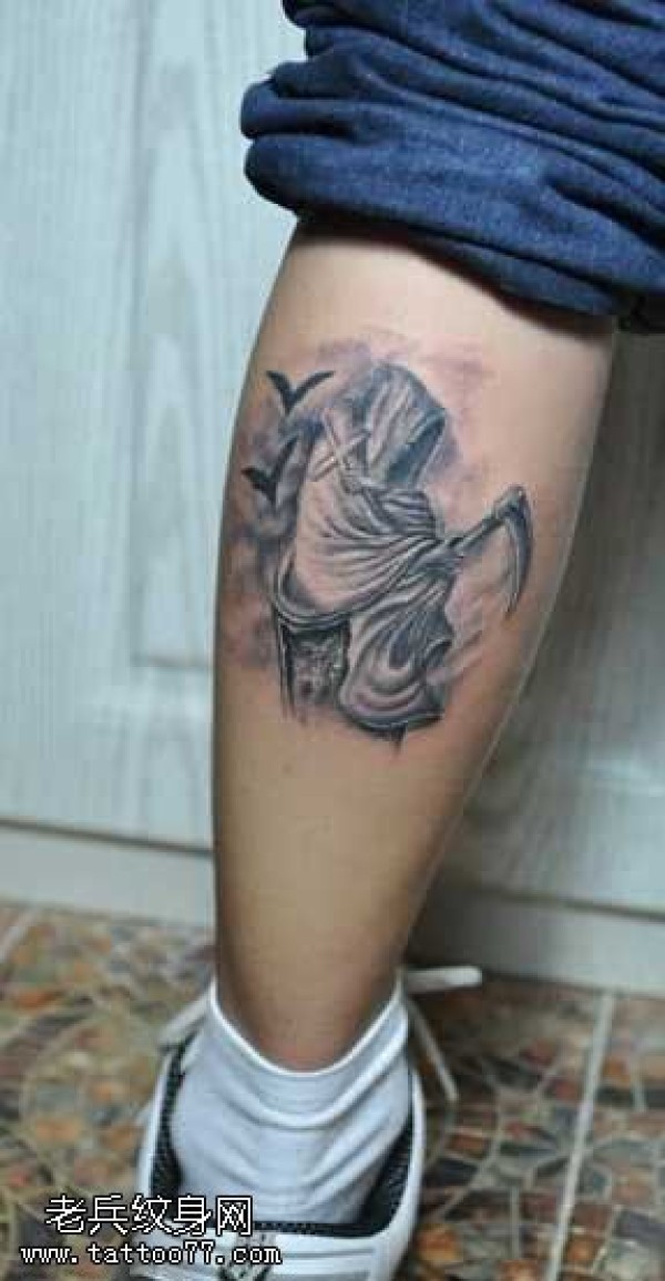 男生小腿死神纹身_腿部纹身图案大全_纹身图吧