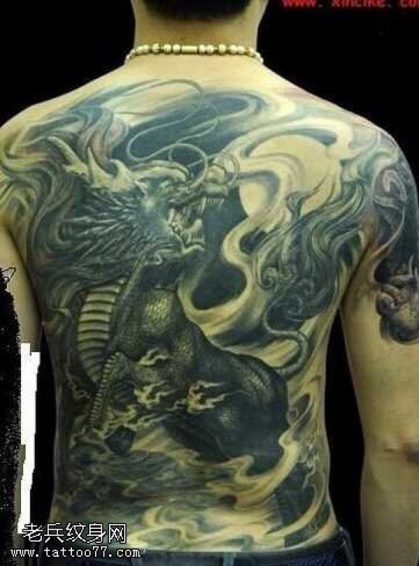 龙纹身手稿_一组老传统黑灰龙手稿纹身图案