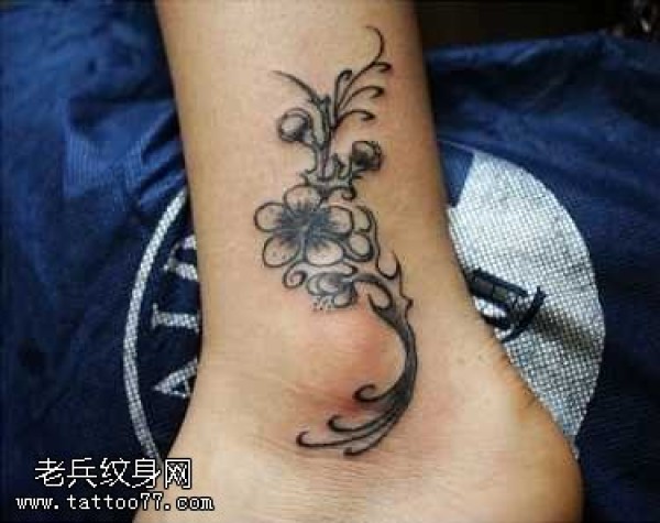 清新小桃花脚踝纹身_脚部纹身图案大全_纹身图吧