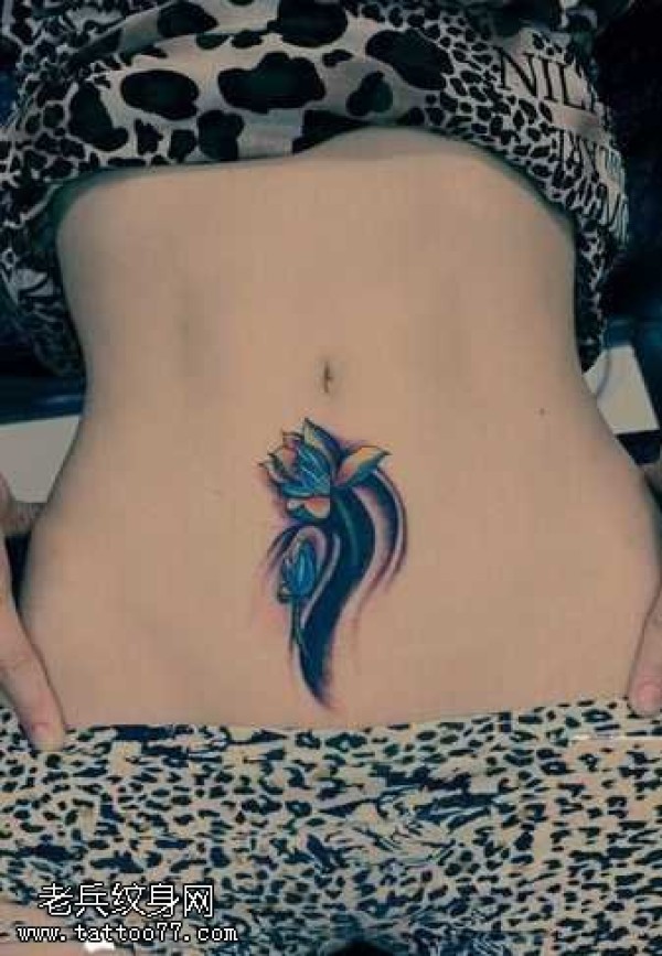 女性腰部莲花花纹刺青_腰部纹身图案大全_纹身图吧