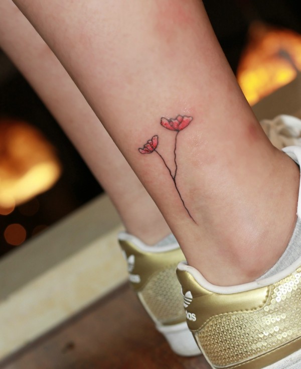 女生脚踝上的小清新花朵纹身图片