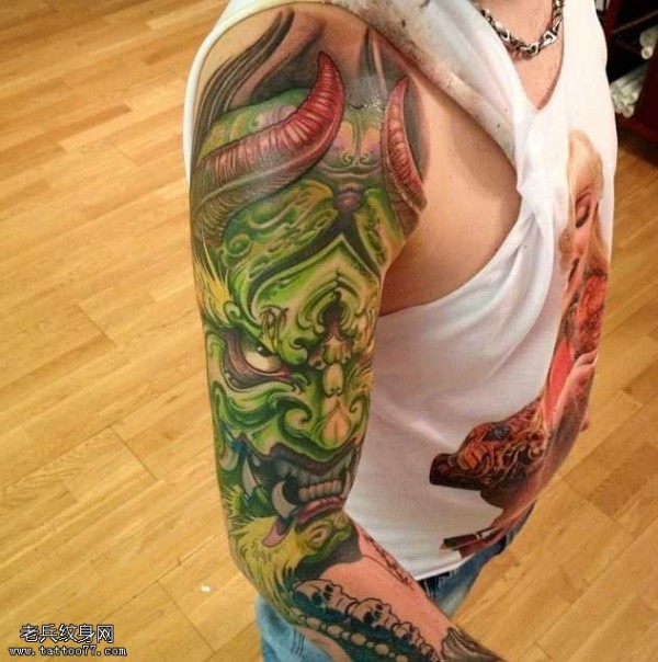 胳膊绿般若纹身图案