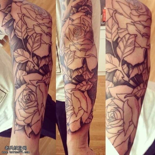 欧美玫瑰纹身 男生手臂上花朵纹身图片