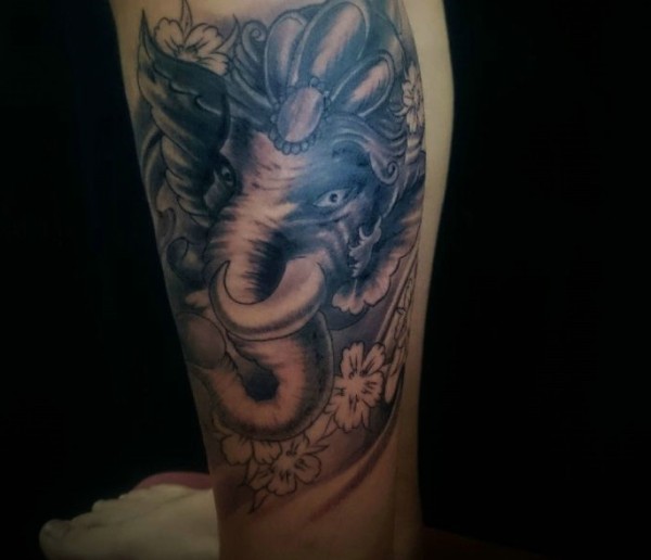 小腿上一款大象纹身图案_腿部纹身图案大全_纹身图吧