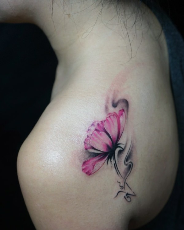 女性肩膀上多款漂亮的花朵纹身图案