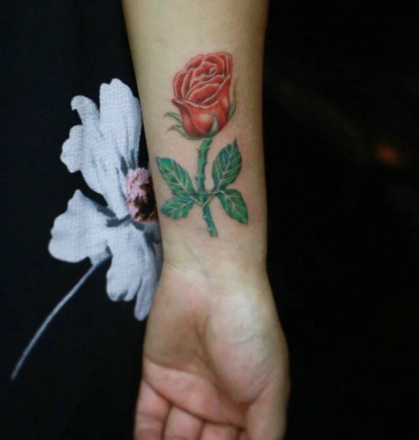 一朵玫瑰手腕纹身刺青鲜艳无比