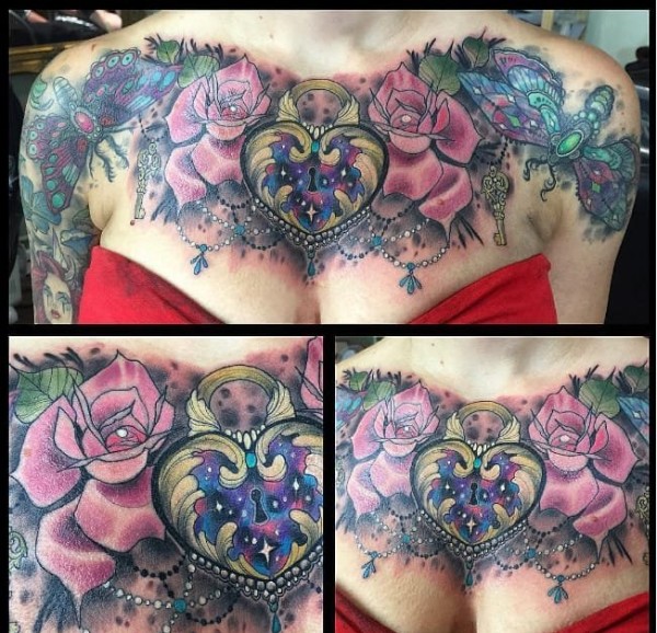 女性大花胸纹身_43张霸气漂亮的女性大花胸纹身图案作品