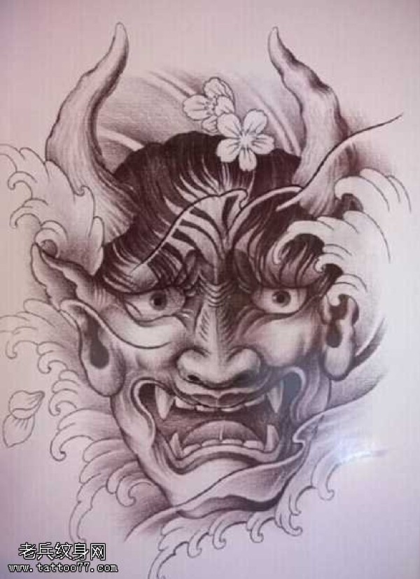 能面万媚纹身手稿_52张日式能剧面具纹身手稿图案素材欣赏