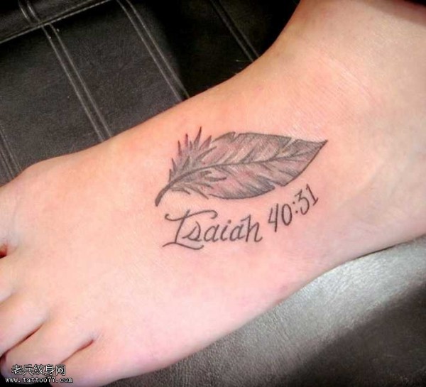 脚部羽毛数字纹身图案
