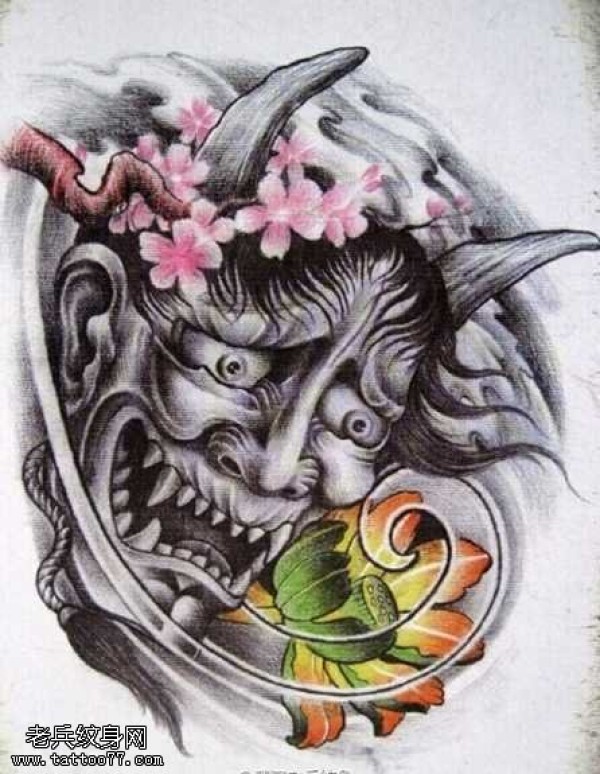 能面万媚纹身手稿_52张日式能剧面具纹身手稿图案素材欣赏