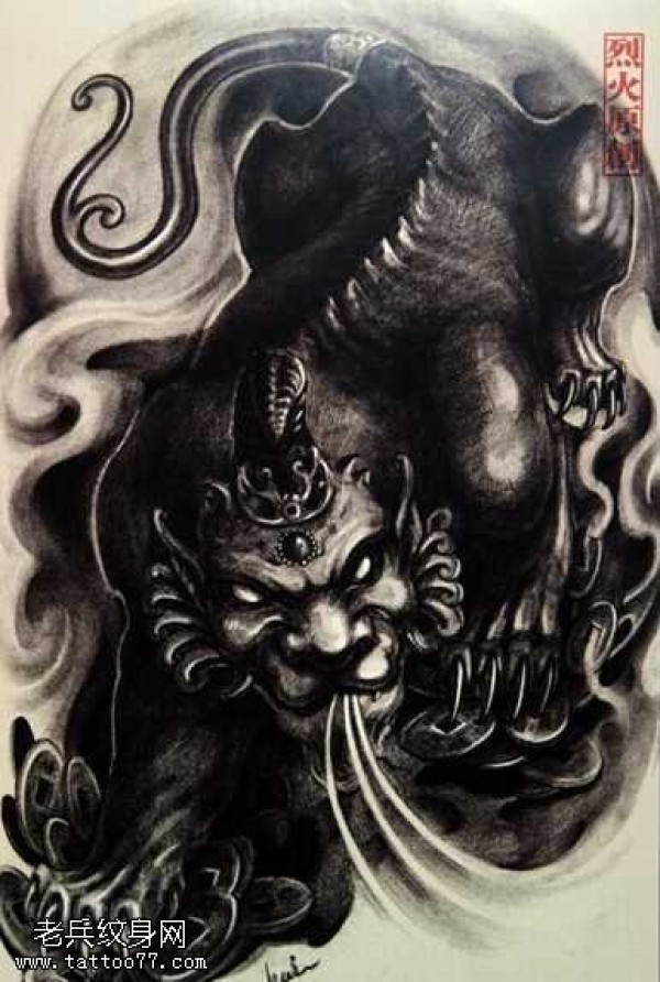 手稿黑麒麟纹身图案